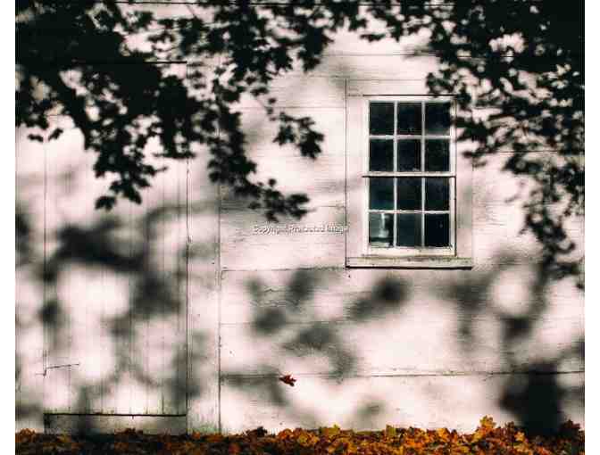 This stunning framed and matted black and white giclee print "Shadow Dance" captures a private residence in Kennebunk.