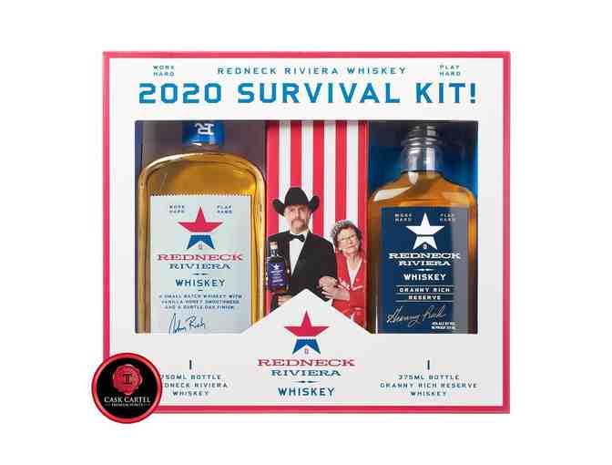The 2020 Redneck Riviera Survival Kit is a must! The combo pack comes with a 750mL bottle of Redneck Riviera Whiskey, and a 375mL bottle of Granny Rich Reserve Whiskey.