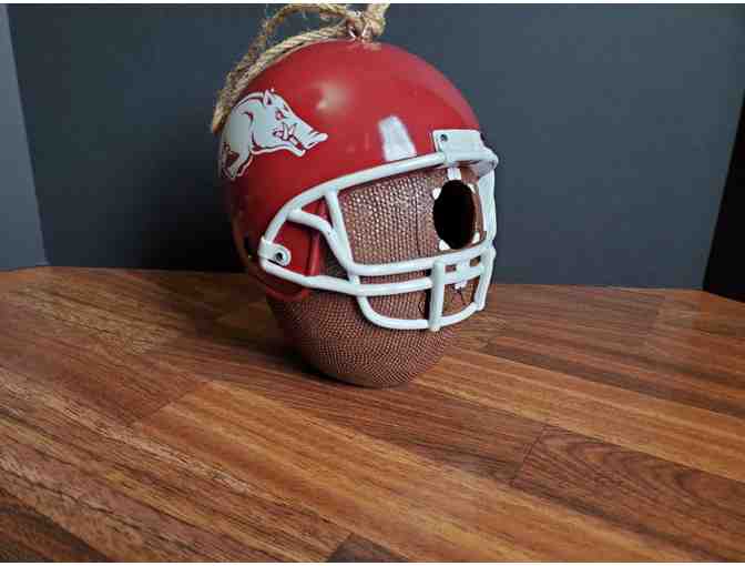 Bird watching just got more exciting with this Razorback Football Birdhouse!