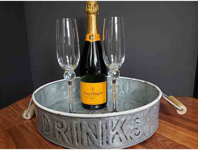 Enjoy the awesome bubbly from Veuve Clicquot with glittery stemware. The cute serving tray is included!