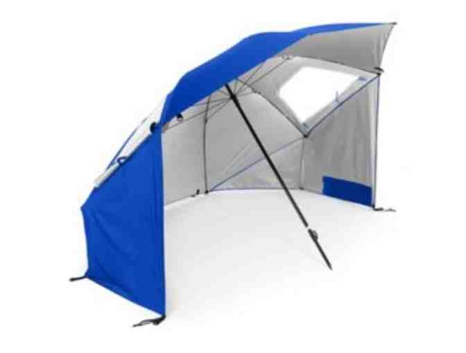 Stay Cool, Stay Dry, Stay Protected with this UPS 50+ Sport Bella! Zippered side windows, wind gust relief vents, side flaps for fill shelter protection, oversized storage pockets, telescoping pole. Includes: carry and storage bag, 8 steel ground stakes, and 3 tie down cords.
