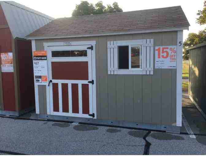 This is a 10 wide X 12 long shed with a 4' X 6' 2" single shed door with left hinge placement, and 2' X 2' horizontal sliding window.