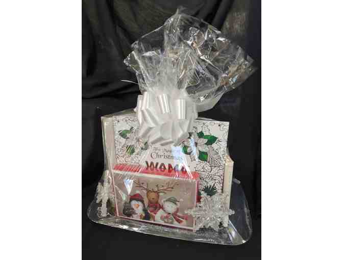 3 Christmas books, a coloring book, pencils and markers.  Box of Christmas cards, 4 Star ornaments, photo album, Christmas tree candle, Box of note cards. Bring your family together this year.