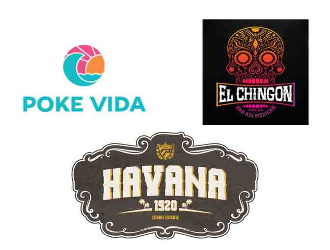 $50 gift card to El Chingon, $50 gift card to Havana 1920 and $50 gift card to Poke Vida.
