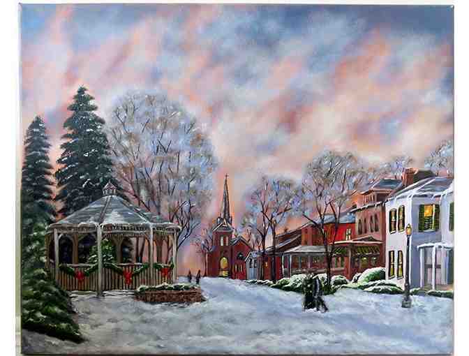 Beautiful 24 X 20 winter evening city scene, Oil Painting by Carol Barrett, unframed
