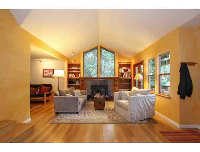 A warm, stylish, energy-efficient home nestled in the redwoods in West Sonoma County near wineries, the coast, Russian River and great restaurants. Solar powered! EV Charger. Sleeps 4-6.