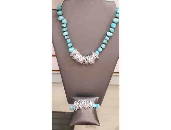 Adena Accents Turquoise and Silver Necklace/Bracelet Set