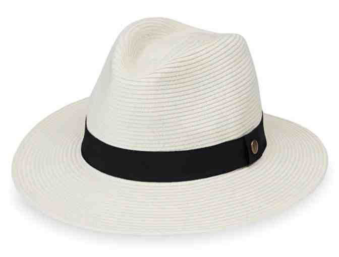 This just may be the perfect hat! Made from a super soft braided fabric and an adjustable elastic fit system, this hat is designed for comfort. Simple, clean lines make for easy wardrobe coordination. 2¾" brim. An adjustable elastic fit system. Size: M/L (59cm). Packable. 100% polyester. Spot clean.