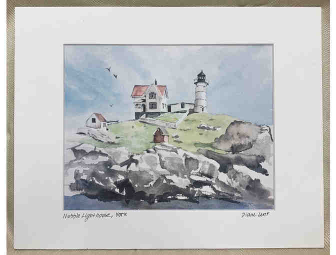 Beautiful Watercolor print of Nubble Light by Maine Home Portrait Artist
