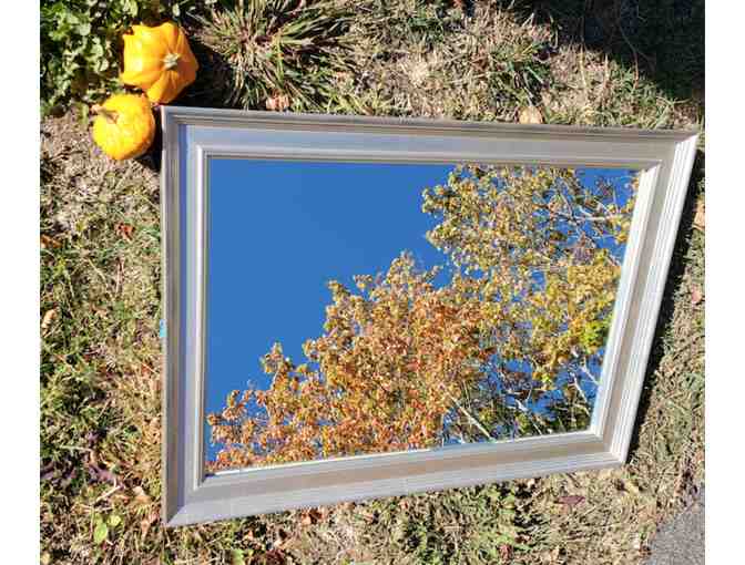 This stately Satin-Silver gilded custom framed mirror measures 16x24" and has a classic 2" wide frame, can be hung vertically or horizontally and is sure to complement any interior/decor.