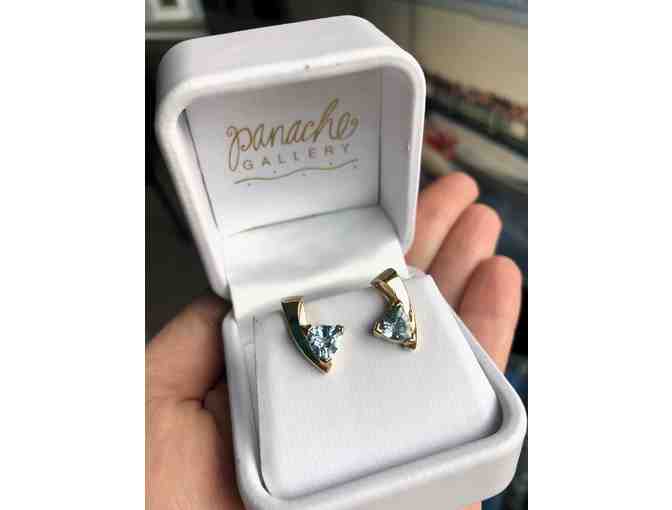 Yellow gold and blue topaz earrings ($895 value) from Panache Fine Jewelry and Art Gallery