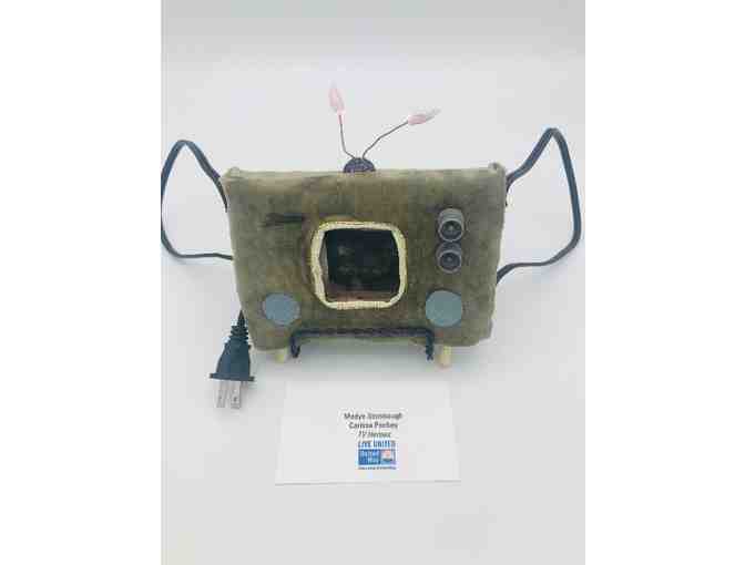Bio: During the stay-in-place order, the TV became the Hero/Savior to many. People found solace in “feel-good” shows, binge watching series and living vicariously through movies. Hence we are showing the TV as a hero and in this interactive mask (turning both “legs” at the same time) the viewer can see some TV character heroes.