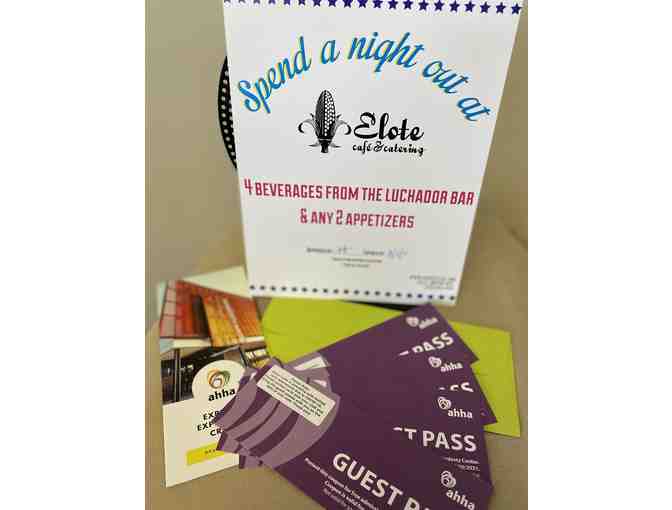 Start your evening at ahha and then end your night at Elote. This package includes 4 passes to ahha, 4 beverages from the Luchador bar, and any two appetizers.