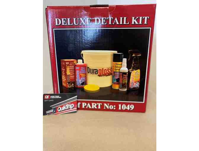 Get ready to detail with this kit that includes 8 oz polish & cleaner, 8 oz vinyl & leather dressing, 14 oz ultimate detail spray, 22 oz all wheel cleaner, 16 oz car wash concentrate, an applicator, and a was bucket. Also included: $20 QuikTrip gift card.