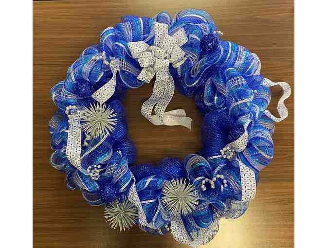 Decorate for Christmas in true TCC blue style. This gorgeous wreath is hand crafted.