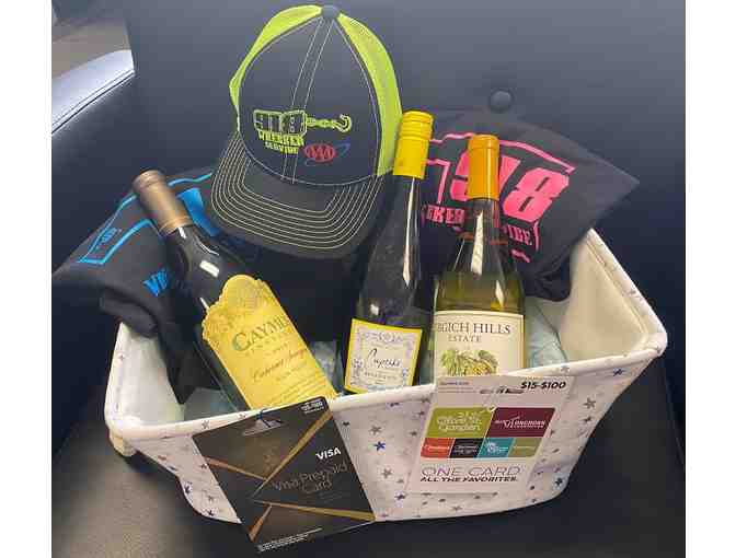 This bundle is almost too hot to handle! Our good friends at 918 Wrecker are offering a $100 Visa and a $100 gift card to a Darden's Restaurant (Olive Garden, Longhorn Steak House, Cheddar's & more). It also contains 3 bottles of wine: Cupcake Moscato, Grgich Hills Estate Chardonnay, and Caymus Vineyards Cabernet. Included as well are two 918 Wrecker Service Unisex Large tee shirts and a matching cap all in a darling cloth basket.