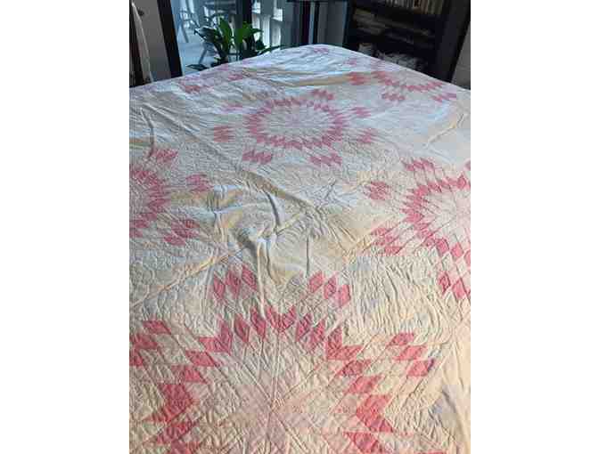 This beautiful vintage quilt features a shining star or radiant star pattern and is over 80 years old. it is in excellent condition. It's a wonderful gift for someone who enjoys antiques or loves quilts.