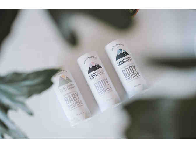 Keep the Family Fresh with MANDUST®, LADYDUST and BABYDUST. This 3-pack of all-natural body powder has all of you covered!