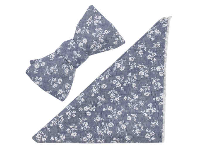 Chambray Bow Tie with White Floral Print