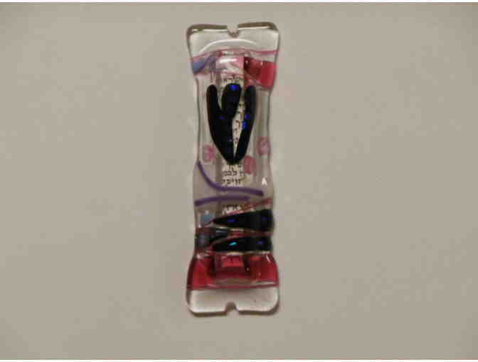 Made of lead-free glass. About 4" tall.