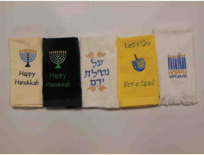 - White, 17-1/4" x 11-1/2", embroidered menorah with "Happy Chanukah"