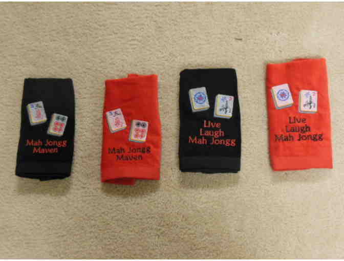 16-1/2" x 11". Embroidered. Each towel shows two tiles and the following sayings: