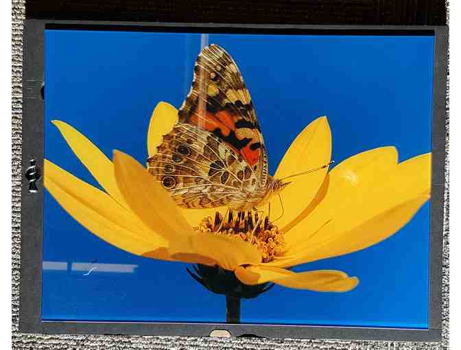 Brilliant colors distinguish this closeup photo of the Painted Lady Butterfly. Printed on glass, the photo measures 11" x 14".