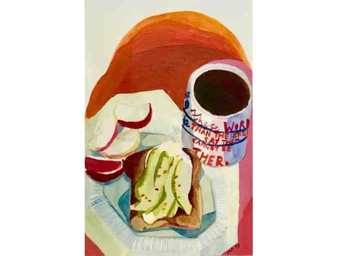 Original painting by local artist, Molly Atryzek, 'Avocado Toast’, gouache on paper, matted and framed, 11”x14”.