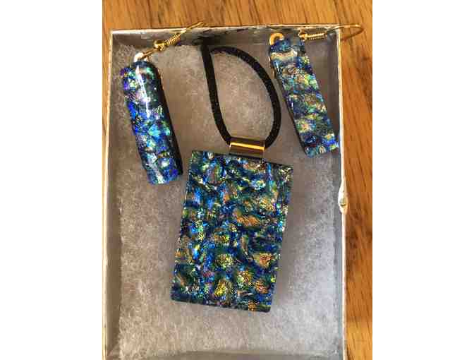 Handmade Glass Pendant and Earrings Electric Iridescent Blue
