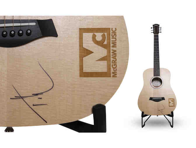 Tim McGraw had hoped to participate in the This Time Tomorrow concert this year but was unable to. Instead he generously signed this “Baby Taylor” guitar to help raise money as part of the This Time Tomorrow Foundation auction. The guitar comes with a case, is hand-signed and features the Mcgraw Music etching.