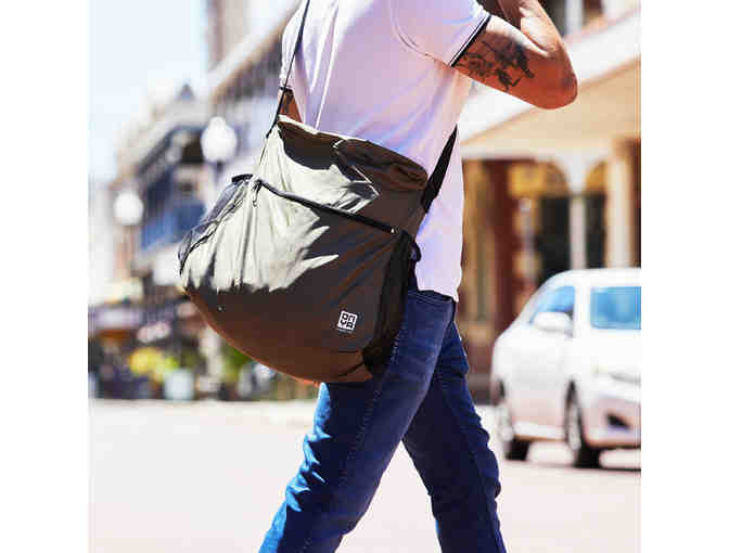 Ethically made from recycled plastic drink bottles, the durable Onya Side Bag makes a perfect day bag and stuffs down into a fist-sized carry pouch so you can take it with you anywhere, anytime.
