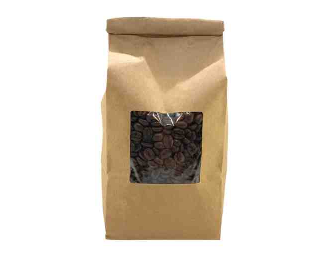 1lb bag of dark roast, whole bean coffee from Kingdom Coffee Roasters Vermont. Organic and Fair Trade.