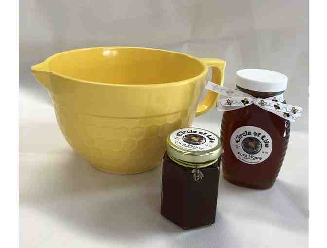 Delicious Beginnings! 2 jars of local grown Circle of Life Honey and Honeycomb Batter Bowl