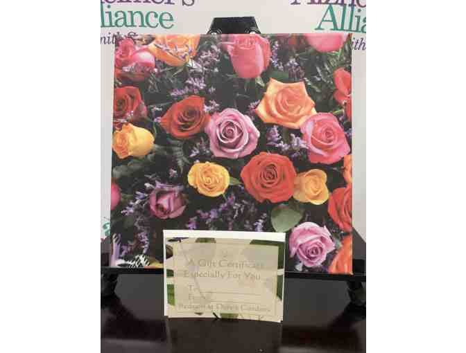 Gift Certificate for a Landscape Consultation from Dory's Garden as well as a 12 by 12 wrapped rose canvas