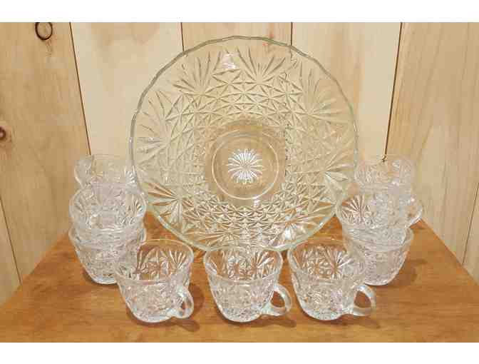 Details: Set includes punch bowl and 11 matching cups. In very good used condition.