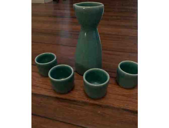 This special Porcelain Sake Set consists of a carafe and 4 cups in a beautiful green pattern.