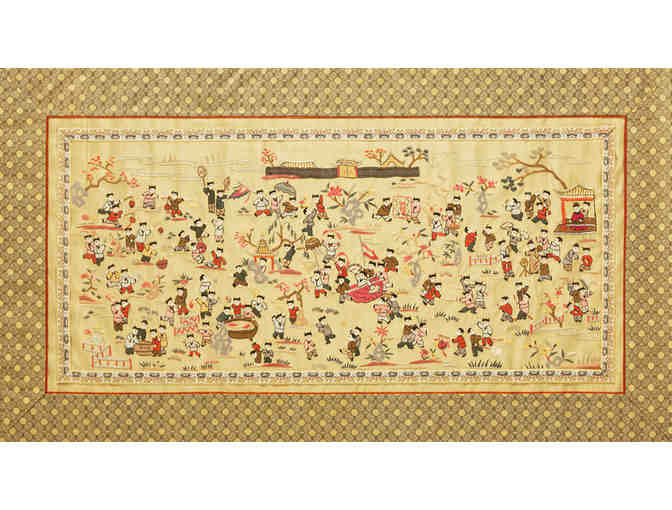 Chinese Tapestry. Hand Stitched - Burgundy and Greens