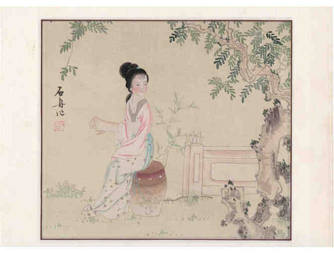 1. Sitting Woman with Scroll. Signed by artist. 11 x 9"