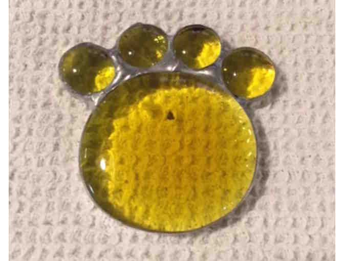 As original as your beloved pet, this sun catcher is created with glass "pebbles", copper foil and solder. It makes a great gift for dog and cat lovers. Or, put one or several in a sunny window to brighten your view. Perfect size for home, office or car. Measures about 2"x2" but no two are exactly the same size.