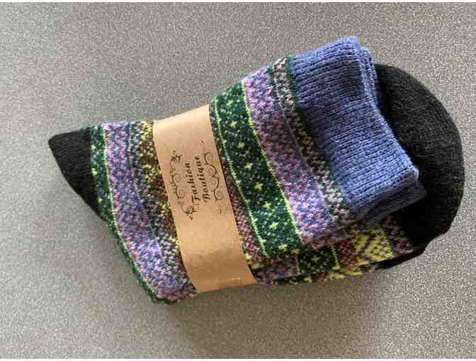 Intarsia Print Crew Socks - Womens - Slate blue on top