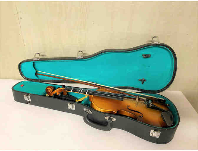 Violin with bow, case and shoulder rest