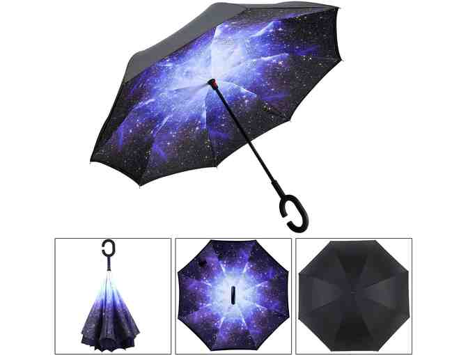Z ZAMEKA Double Layer Inverted Umbrellas Reverse Folding Umbrella Windproof UV Protection Big Straight Umbrella Inside Out Upside Down for Car Rain Outdoor with C-Shaped Handle - Starry Sky Design