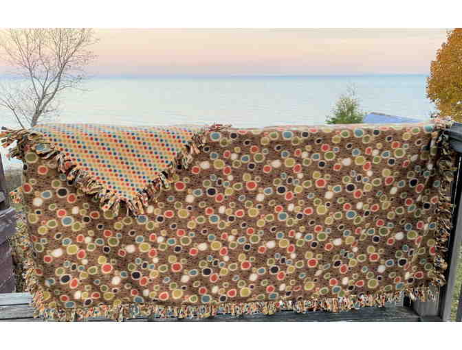 Fleece Blanket 65" by 58". This blanket was made by Virginia Upper who along with Marian Reid taught Jeanne to make her first comfort blanket back in 2007 at camp. Jeanne went on to make 500 blankets. These blankets have become a staple at our fall Camp Cavell Women's Weekends.