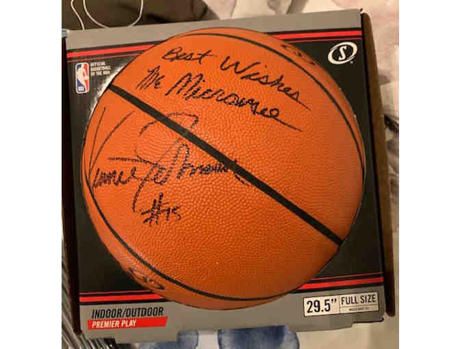 Signed basketball: BEST WISHES THE MICROWAVE. VINNIE JOHNSON # 15