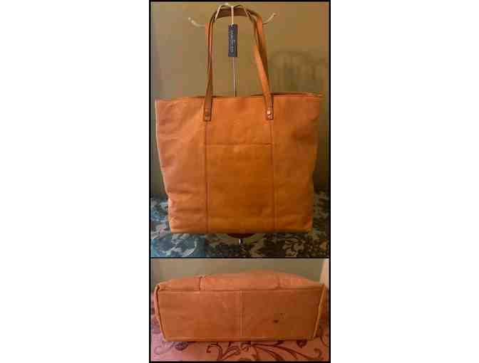 - Double leather top handles, 10.25" drop