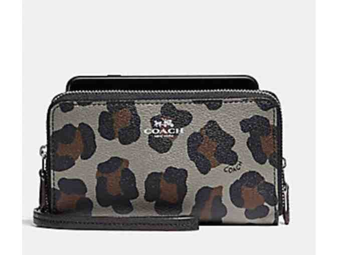 COACH DOUBLE ZIP PHONE WALLET WITH OCELOT PRINT