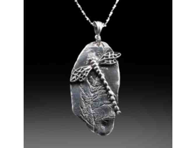 Sterling Silver Dragonfly on Fern Pendant Necklace by Helen Yetman-Bellows