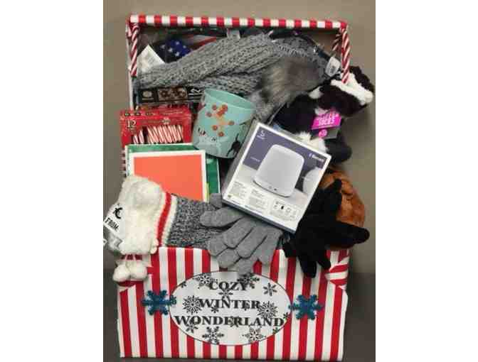 This basket has everything to stay warm, cozy and entertained for a cold winter day.