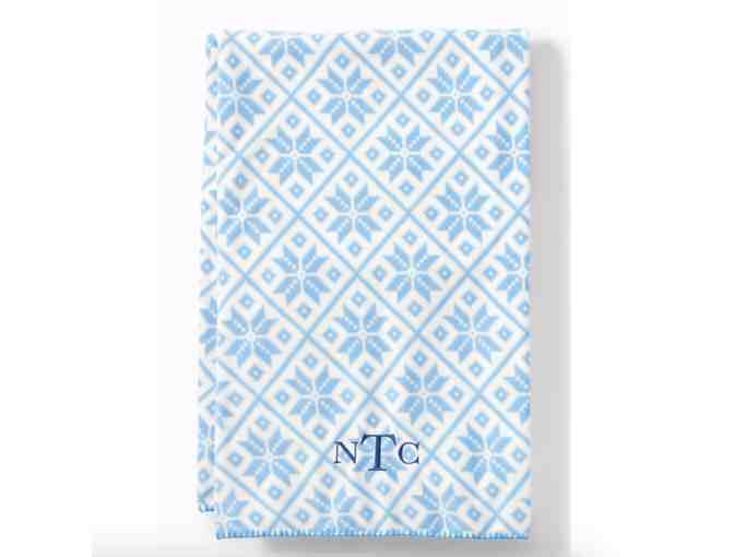 Land's End Plush Fleece Printed Throw Blanket - CHILLED BLUE SNOWFLAKE