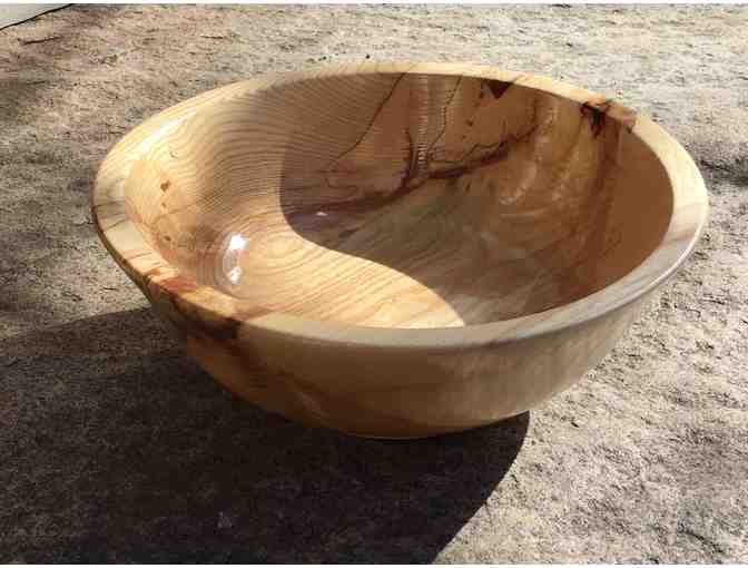 Beautiful hardwood salad bowl is hand turned from white ash. Crafted to preserve the natural hardwood grains and markings. Created by Paul Butler of Butler Furniture in Fitchburg MA.